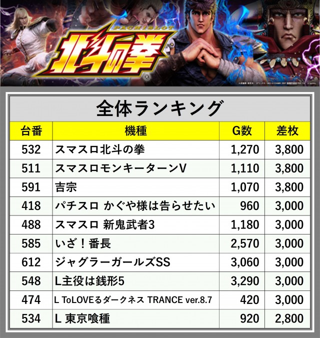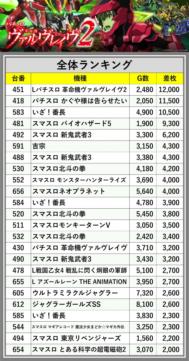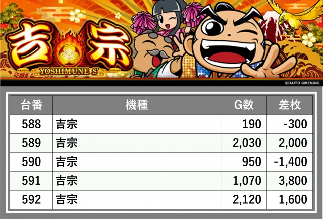 厳選された取材対象機種をはじめ、その他スロット全体から好記録が飛び出した!プレイヤーが楽しんだ1日を下記データにて振り返ってみて欲しい。