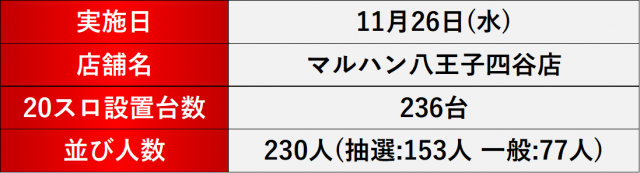 11月26日(水)マルハン八王子四谷店にて、DMMぱちタウンの「格付けスピリッツ」を実施。
