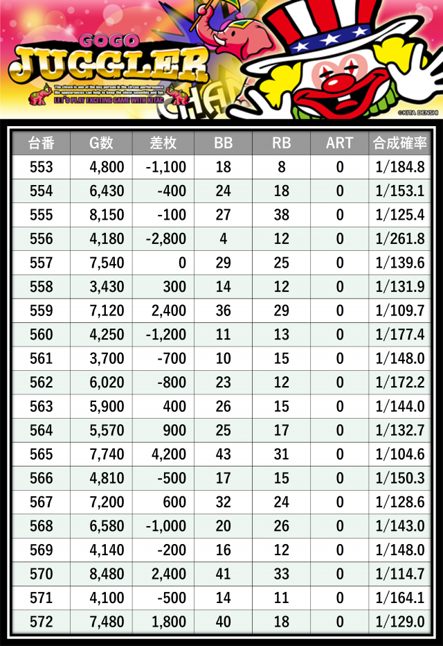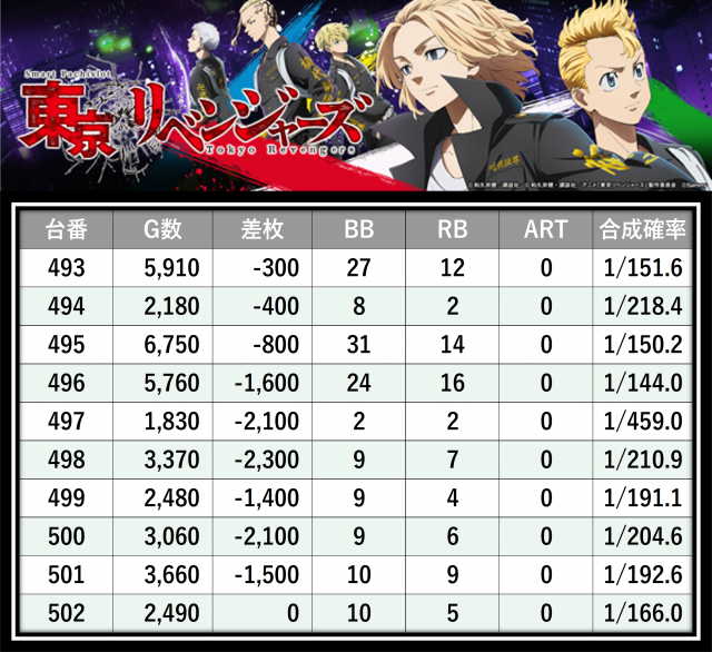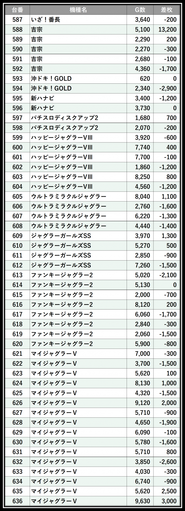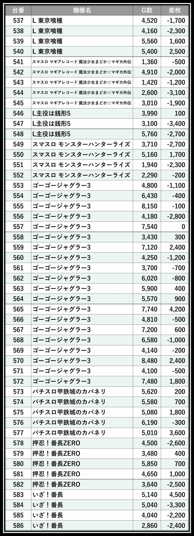 ※差枚数順に掲載しています