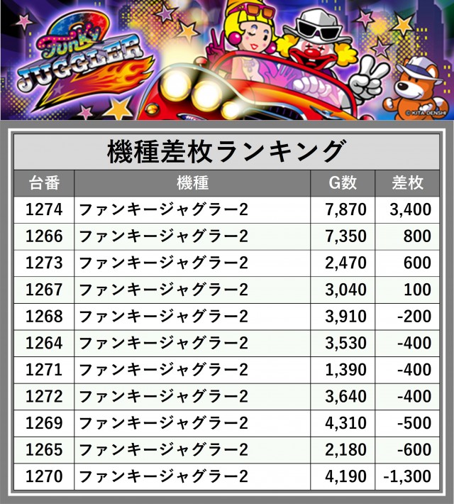 厳選された取材対象機種をはじめ、その他スロット全体から好記録が飛び出した!プレイヤーが楽しんだ1日を下記データにて振り返ってみて欲しい。
