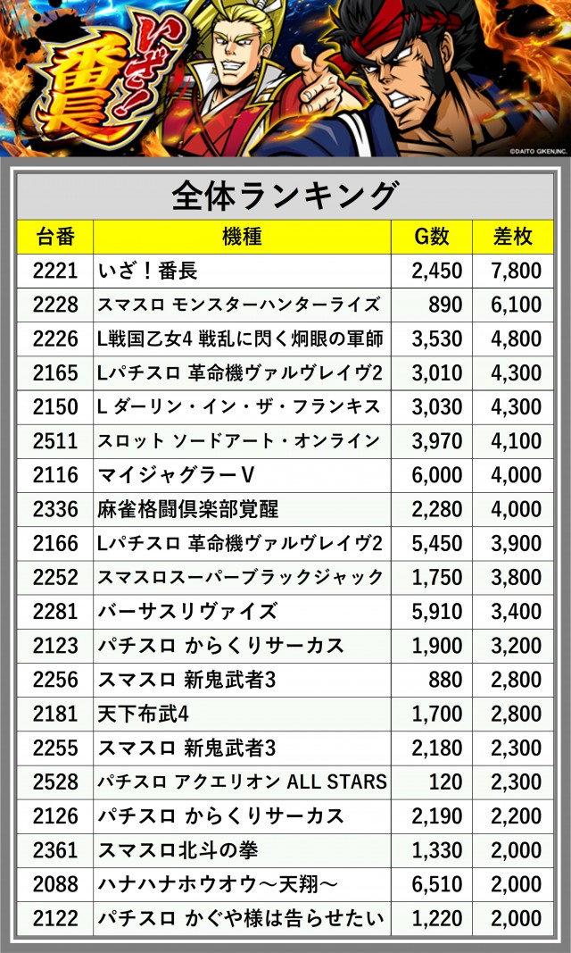 厳選された取材対象機種をはじめ、その他スロット全体から好記録が飛び出した!プレイヤーが楽しんだ1日を下記データにて振り返ってみて欲しい。