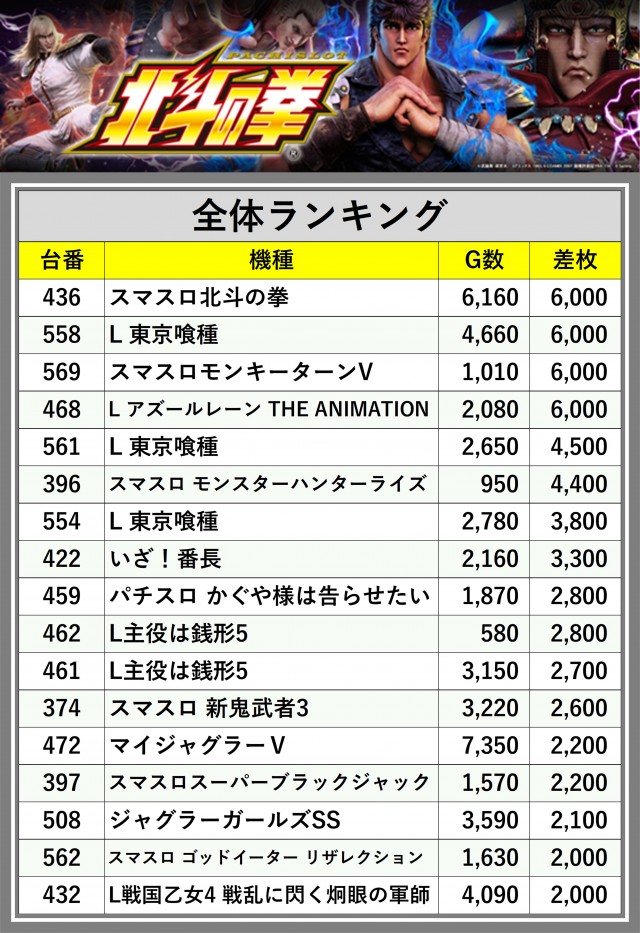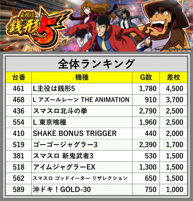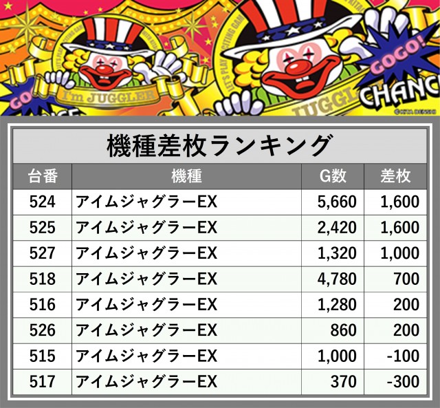 厳選された取材対象機種をはじめ、その他スロット全体から好記録が飛び出した!プレイヤーが楽しんだ1日を下記データにて振り返ってみて欲しい。