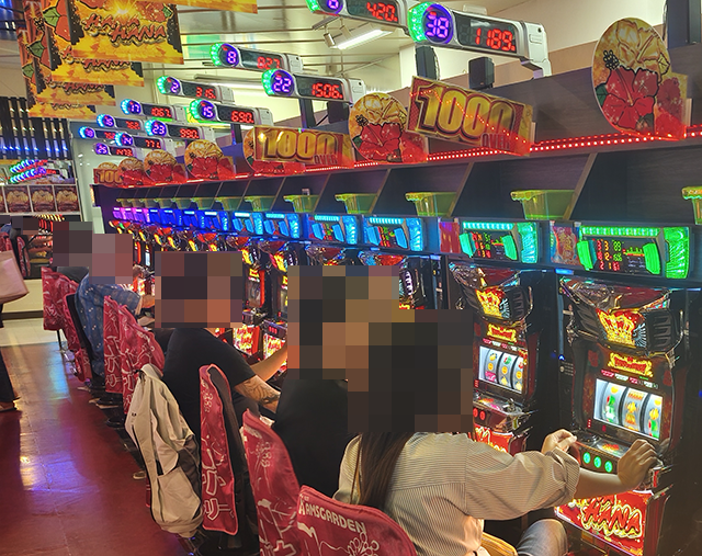 11月2日、沖縄県うるま市にある「アムズガーデン赤道店」へと向かった。今回の取材は、「華盛り取材」だ。プレイヤーたちの活気が満ちたシマ内には、華やかな空間が広がっていた。
