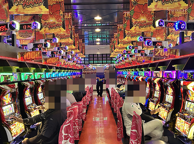 沖縄県うるま市にあり、100台以上の沖スロが設置されているホールだ。