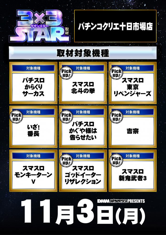 「パチンコクリエ十日市場店」にて3×3STAR取材を実施!!