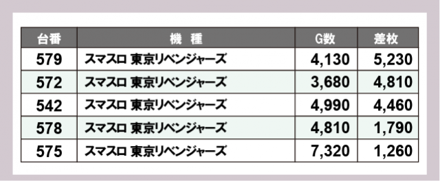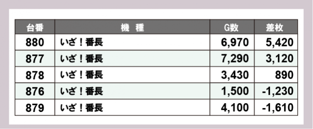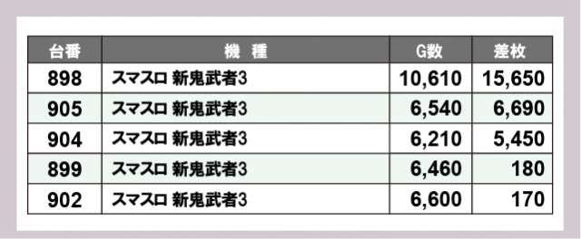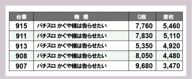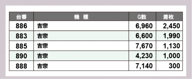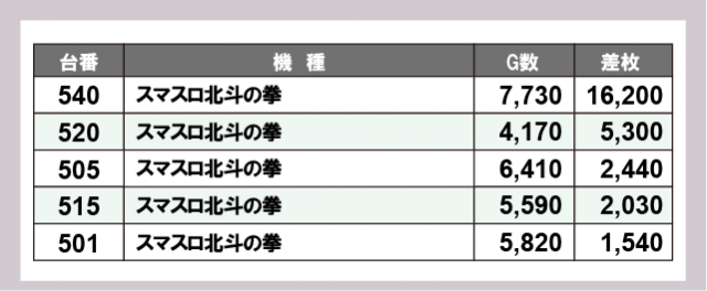 ※差枚数順に掲載しています