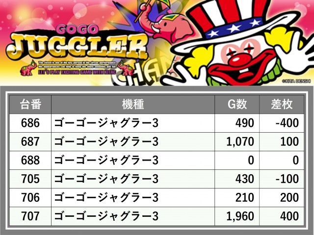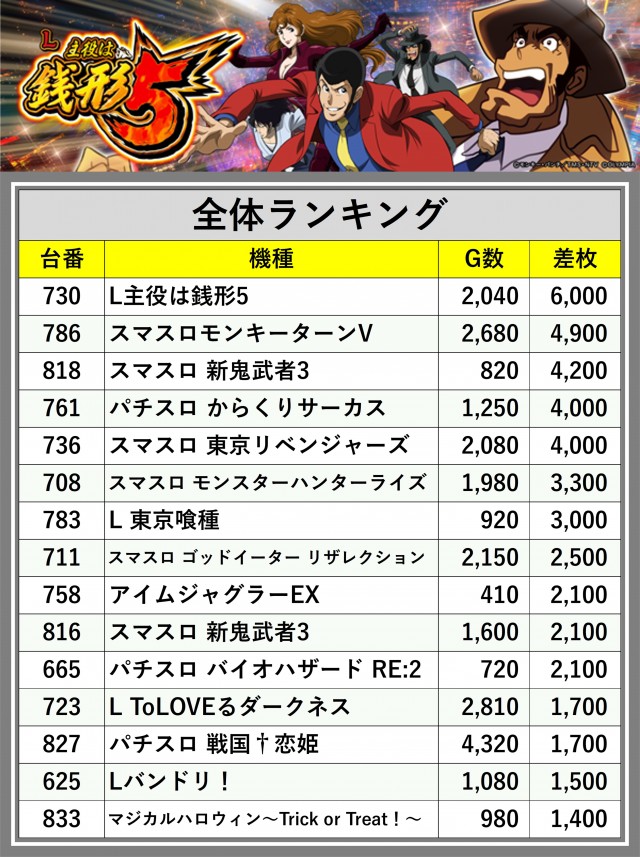 厳選された取材対象機種をはじめ、その他スロット全体から好記録が飛び出した!プレイヤーが楽しんだ1日を下記データにて振り返ってみて欲しい。