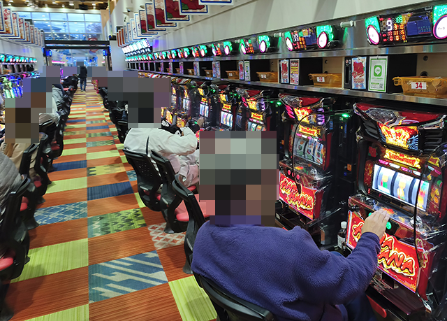 「キングハナハナ-30」や「アイムジャグラーEX」もにぎわいが大きく、多くのプレイヤーが遊技を満喫しているといった印象。