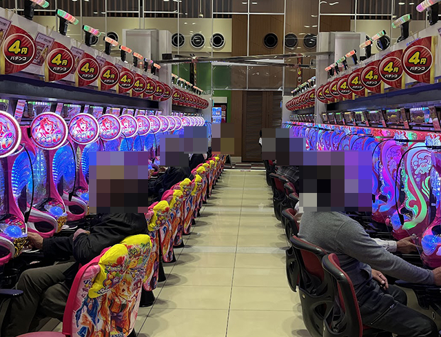 17時をまわった頃の店内は、パチンコとパチスロの両方がにぎわっていた。