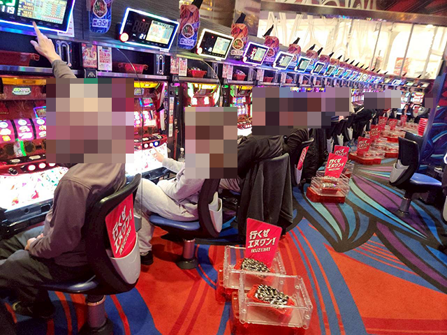 パチスロでは、「沖ドキ!ゴージャス-30」に、笑顔のプレイヤーがズラリ!