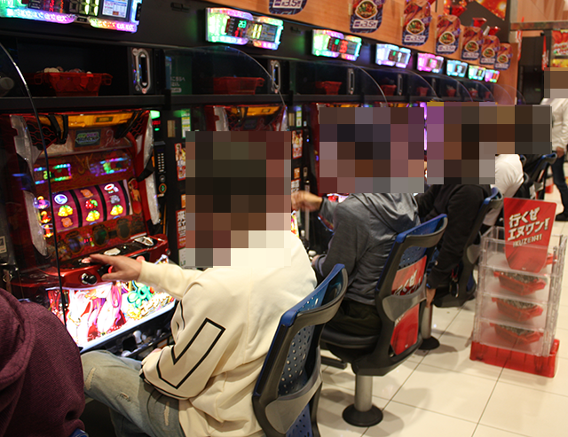 どちらの機種にも持ち玉を使い、笑顔で遊技をおこなっている姿があった。