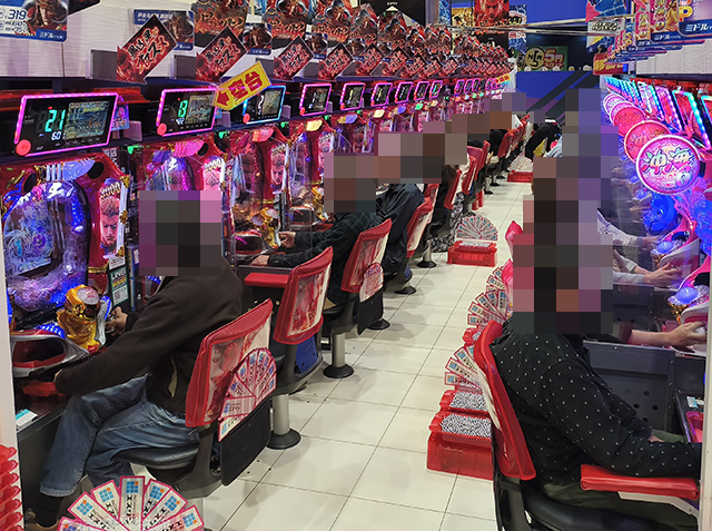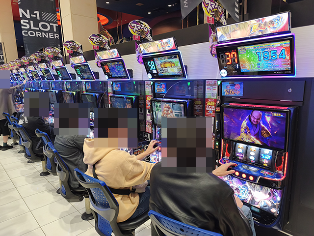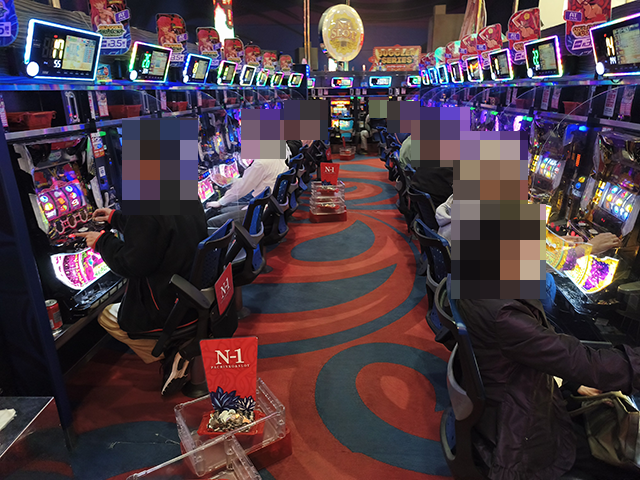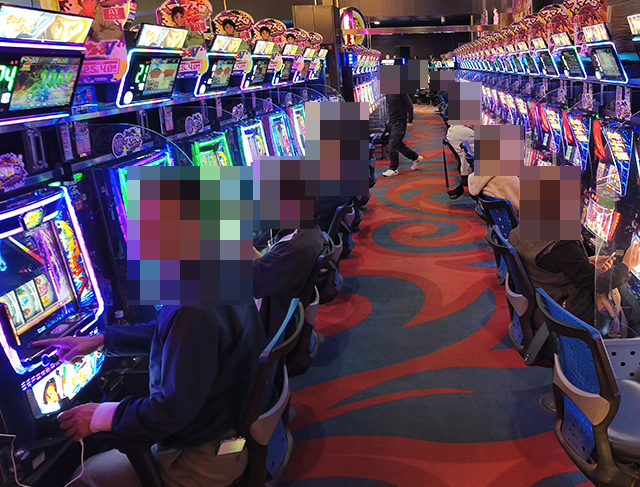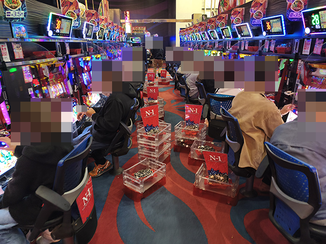 シマ内の活気は大きく、大箱5箱以上の持ち玉で遊技をおこなうプレイヤーを確認した。