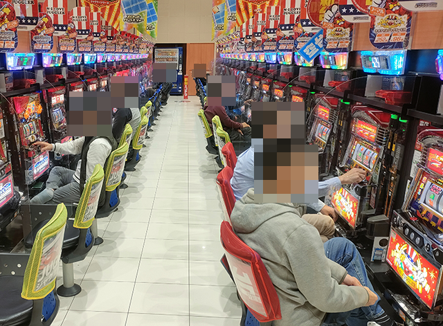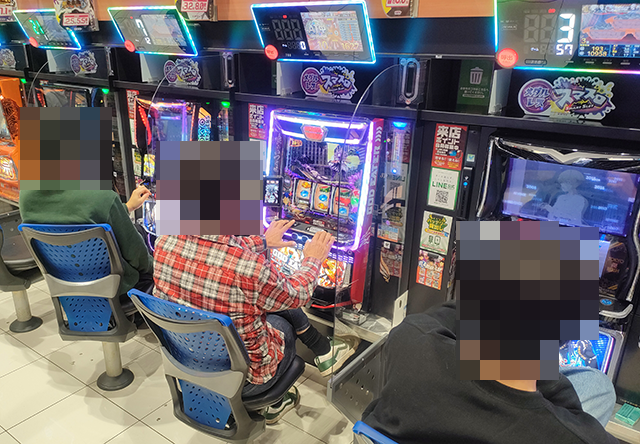 「ネオアイムジャグラーEX」や「マイジャグラーⅤ」に、遊技を満喫しているといった姿があった。