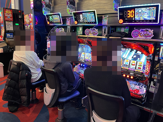 「沖ドキ!ゴージャス-30」や「沖ドキ!GOLD-30」、「ドラゴンハナハナ~閃光~ 30」などに、持ち玉を使って遊技を楽しんでいる姿があった。