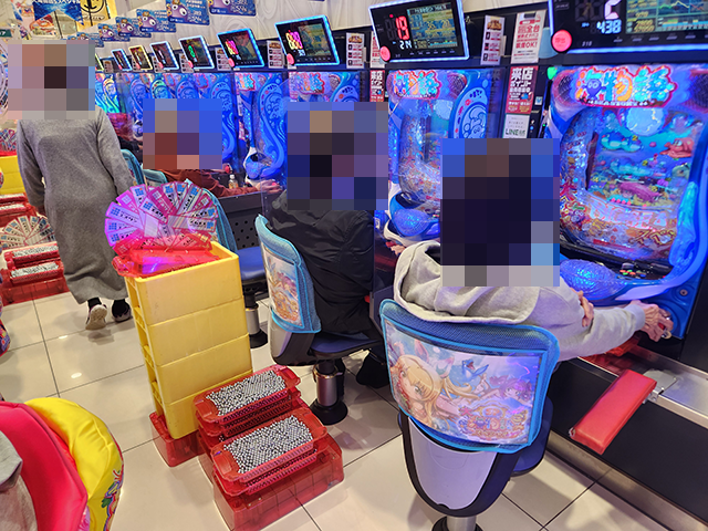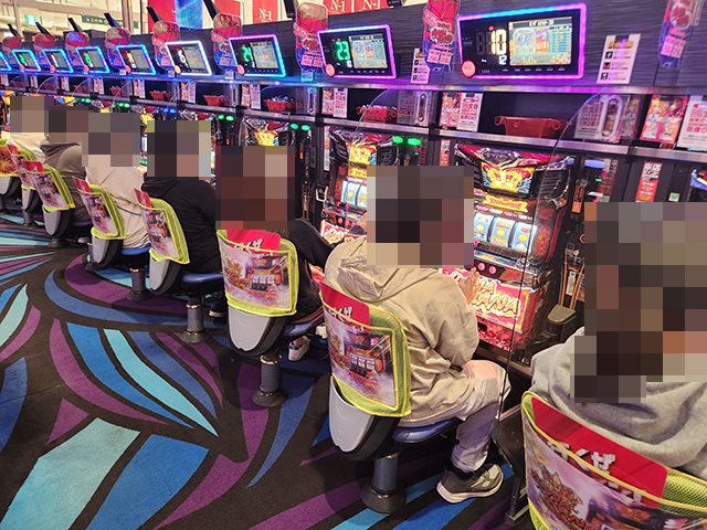 14時を過ぎた頃のパチスロは、沖スロが活気づいていた。