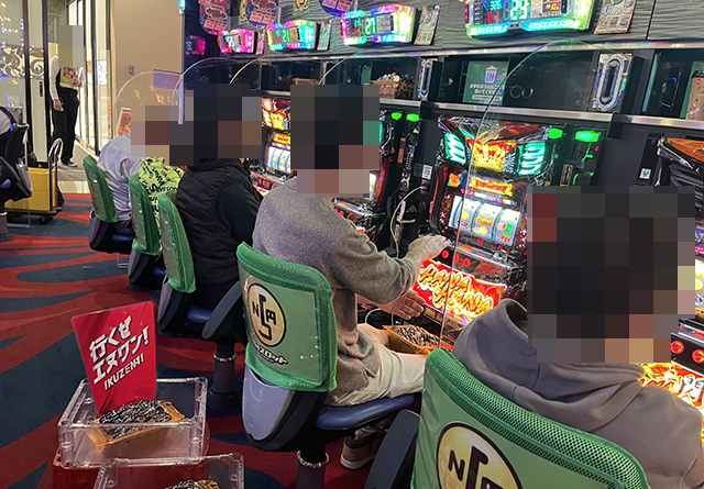 持ち玉で遊技をおこなっているプレイヤーが多く、2箱以上の持ち玉もアリ。