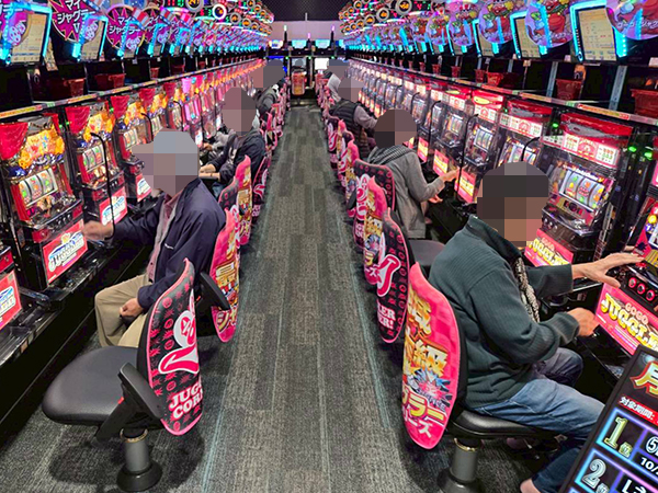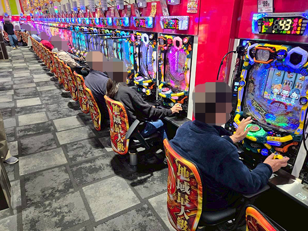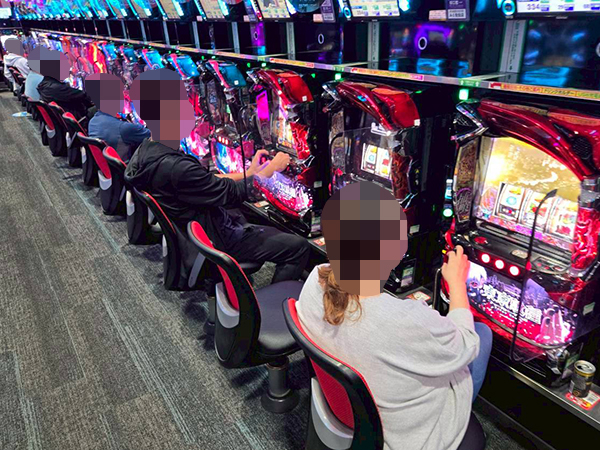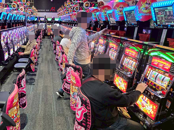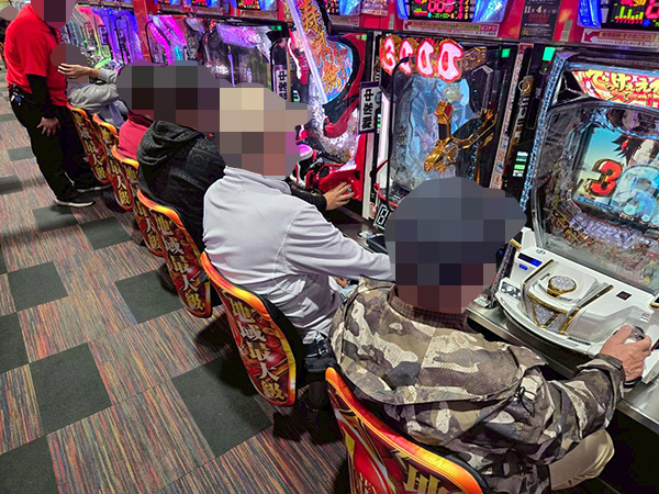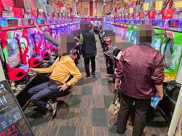 取材時は既に多くのプレイヤーが集結し、パチンコ・パチスロを問わずにぎやかな状況となっていた。