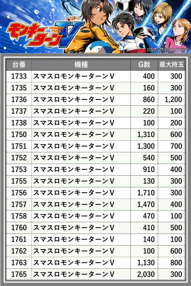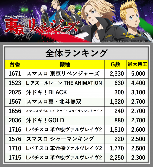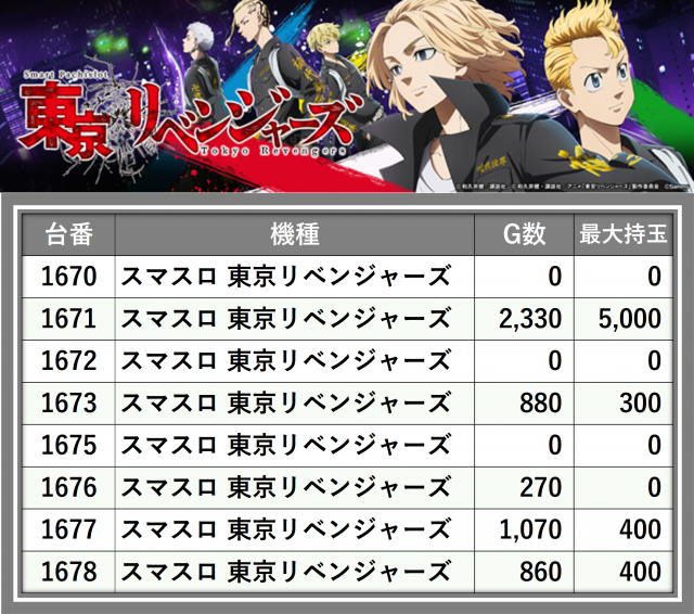 ※台番順に掲載しています
