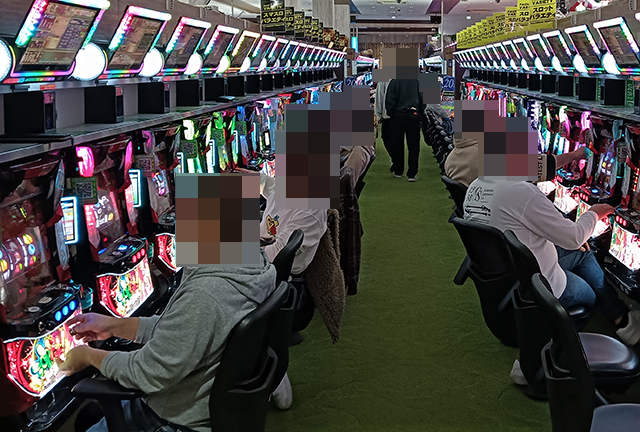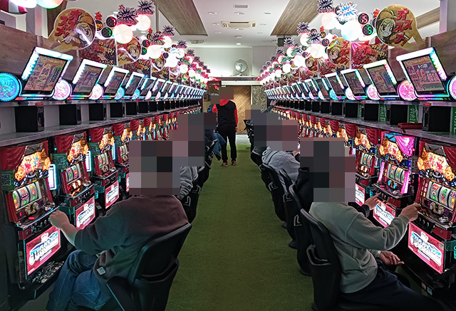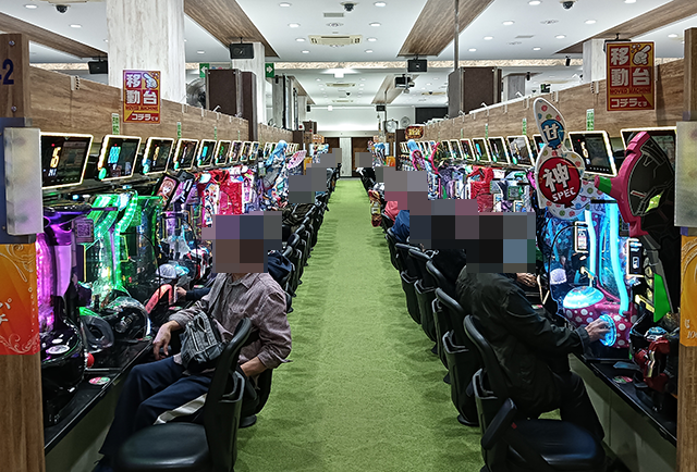 さまざまな機種に持ち玉で遊技をおこなう姿があった。
