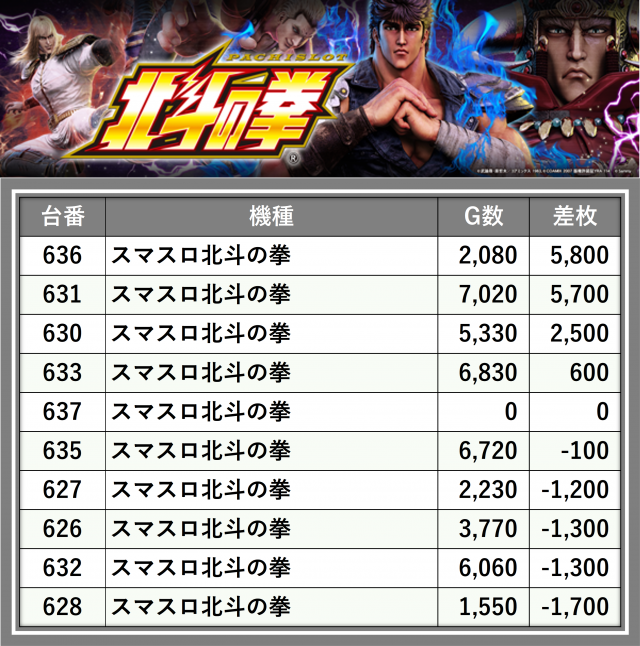 ※差枚数順に掲載しています