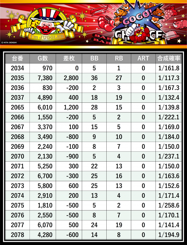 その結果の中から、ぱちタウンが注目すべきポイントを厳選してユーザーにお届け!プレイヤーが楽しんだ一日を下記データにて振り返ってみて欲しい。