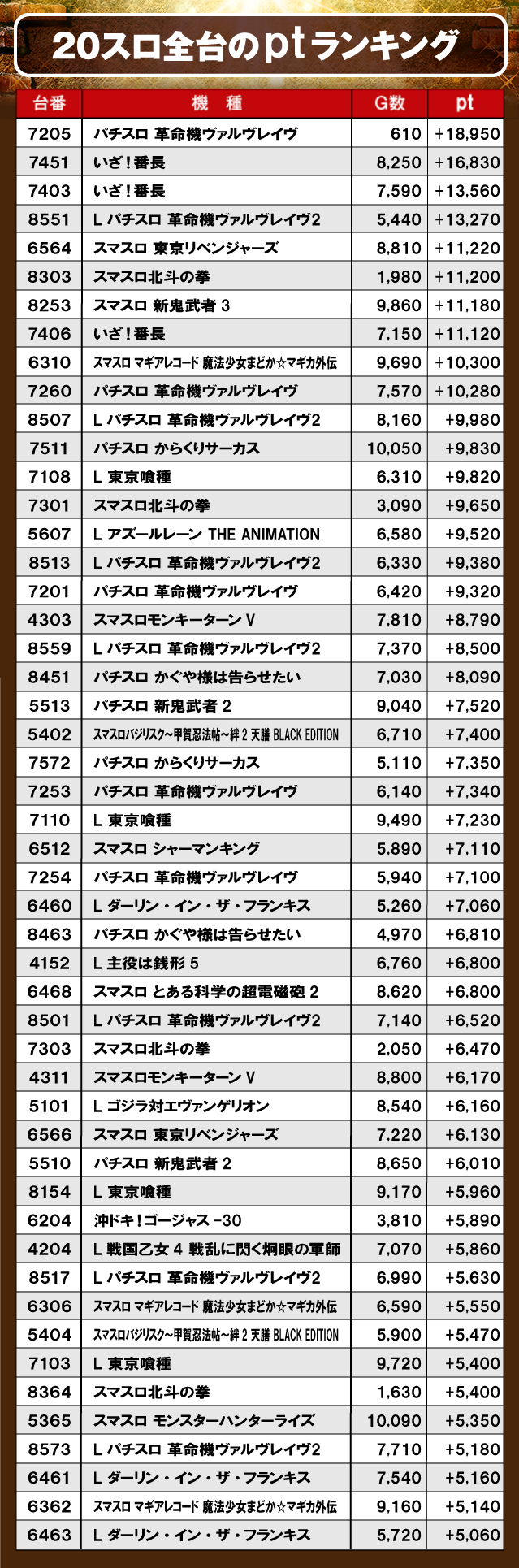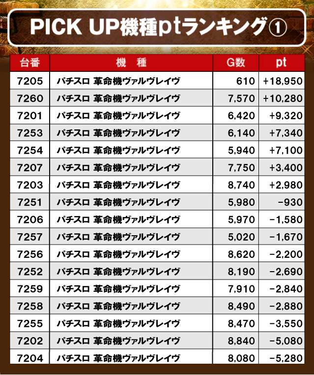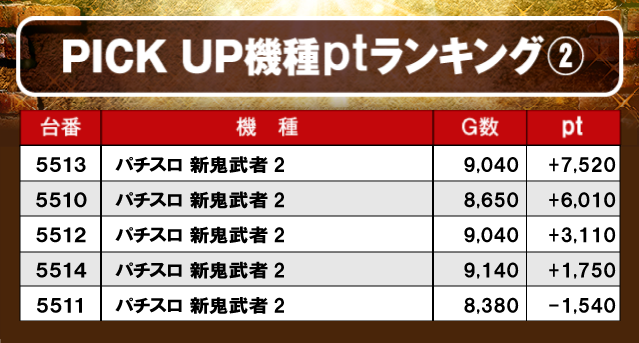 ③PICK UP機種のptランキング