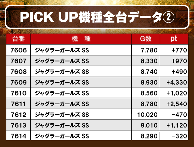 ②PICK UP機種の全台データ
