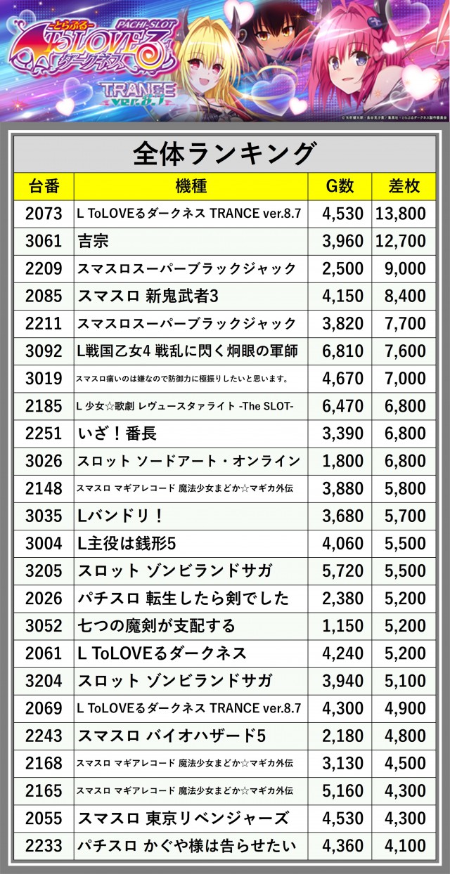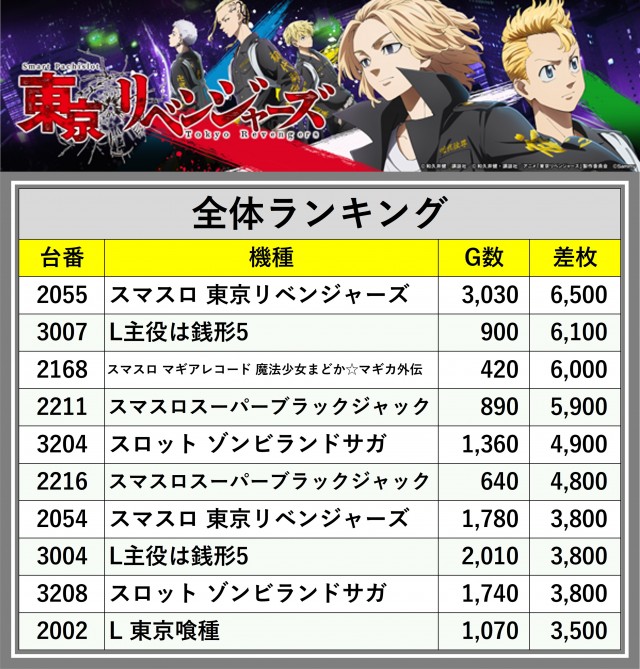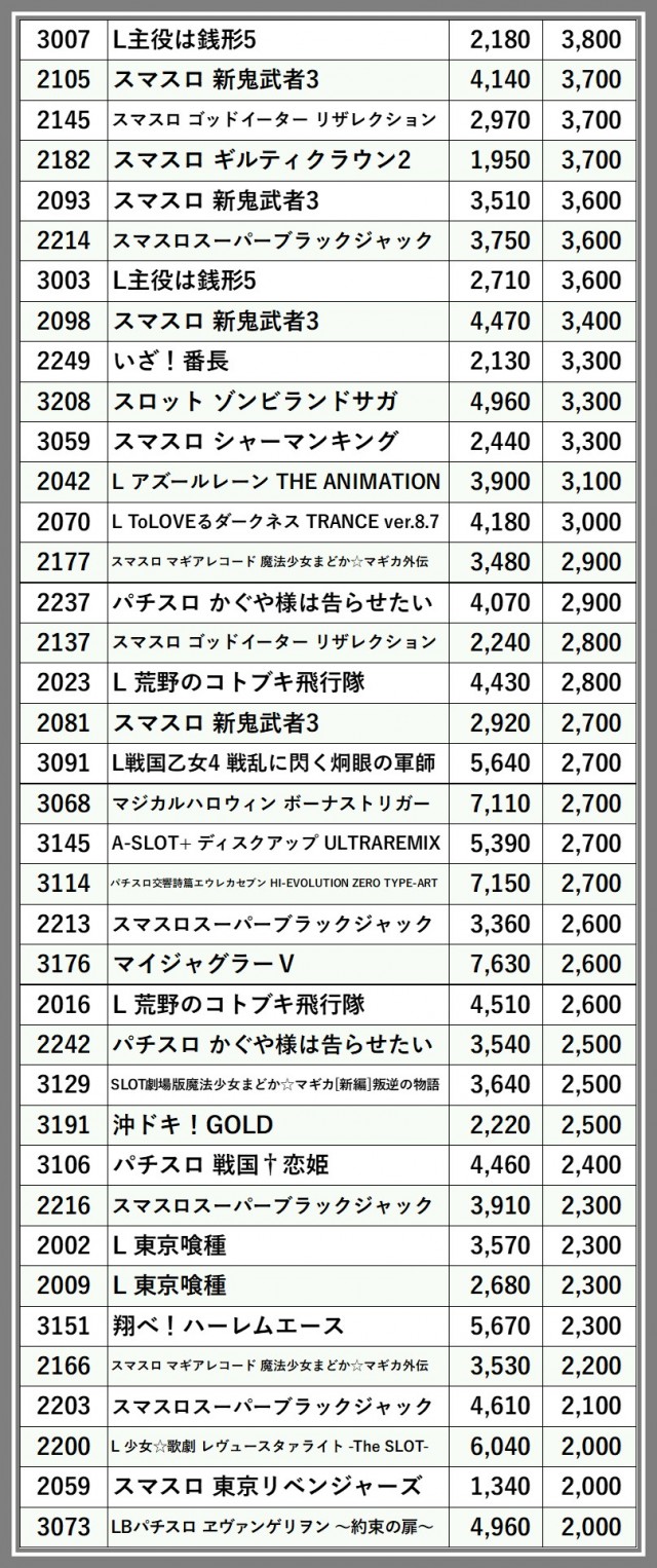 厳選された取材対象機種をはじめ、その他スロット全体から好記録が飛び出した!プレイヤーが楽しんだ1日を下記データにて振り返ってみて欲しい。