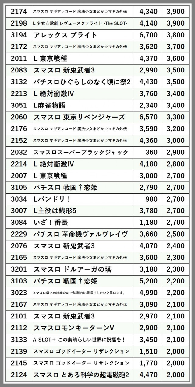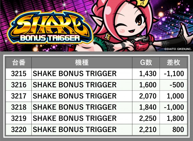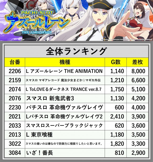 厳選された取材対象機種をはじめ、その他スロット全体から好記録が飛び出した!プレイヤーが楽しんだ1日を下記データにて振り返ってみて欲しい。