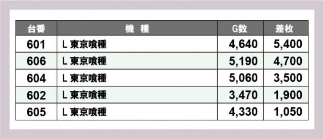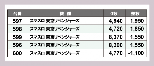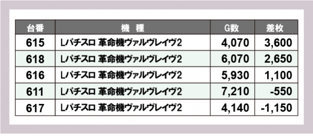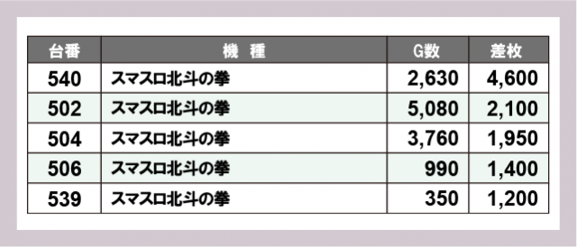 ※差枚数順に掲載しています
