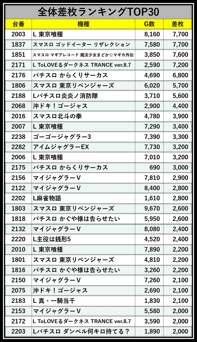 その結果の中から、ぱちタウンが注目すべきポイントを厳選してユーザーにお届け!プレイヤーが楽しんだ一日を下記データにて振り返ってみて欲しい。