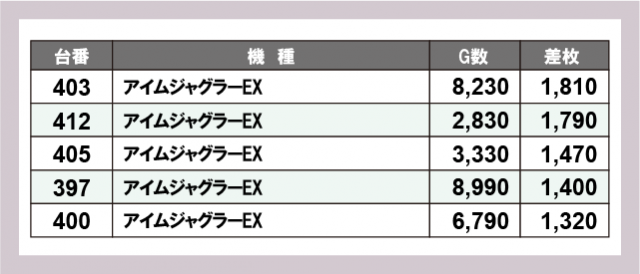 ※差枚数順に掲載しています
