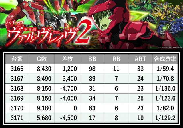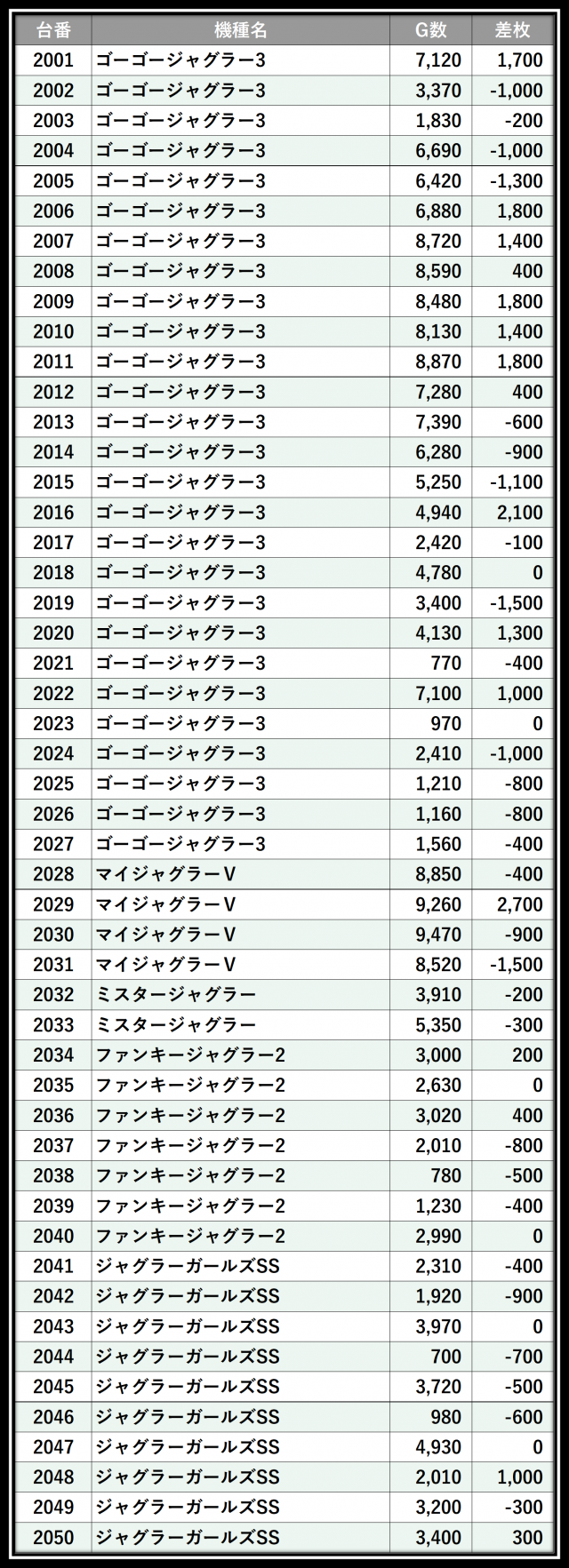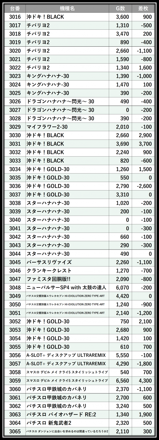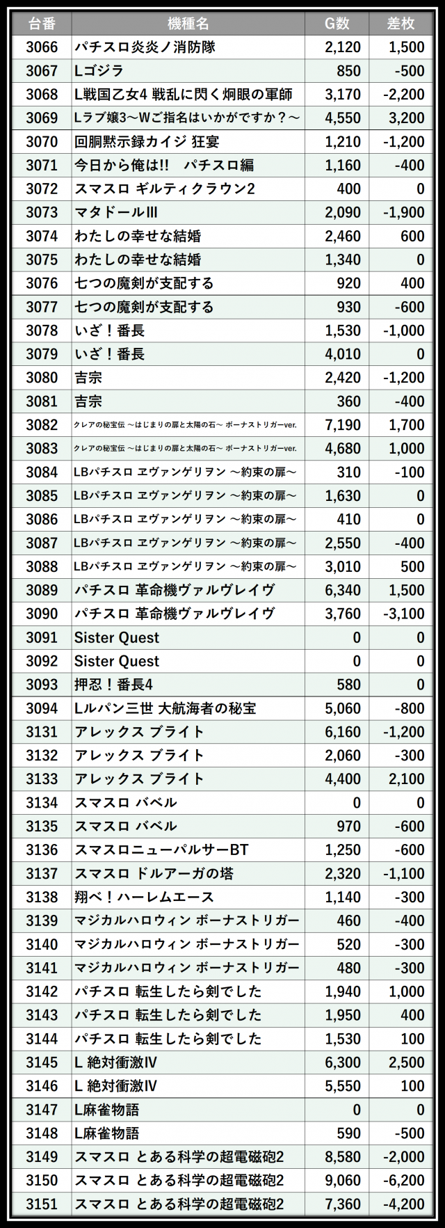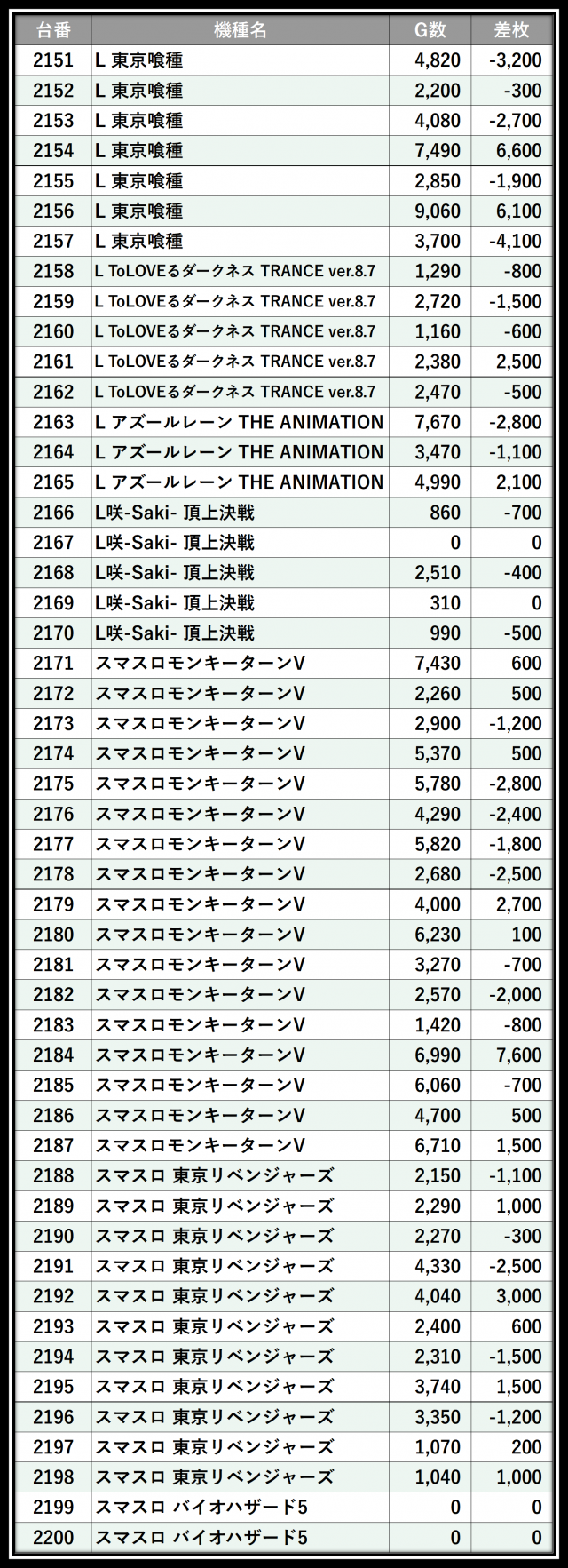 ※差枚数順に掲載しています