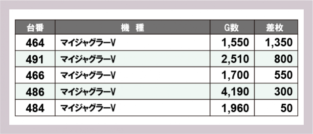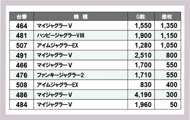 ジャグラー差枚ランキング