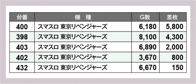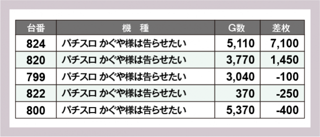 ※差枚数順に掲載しています