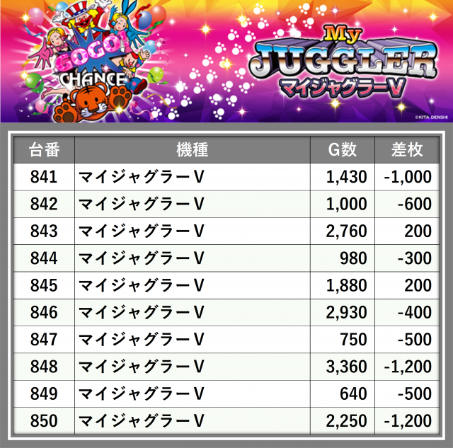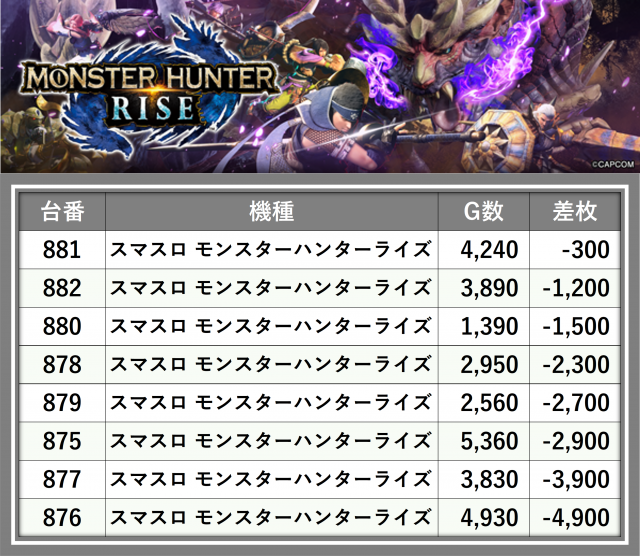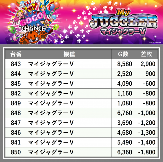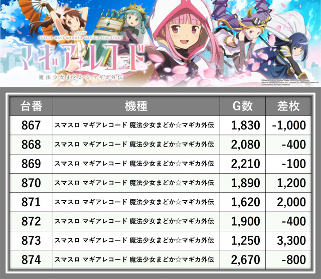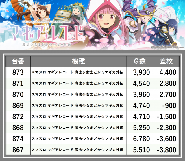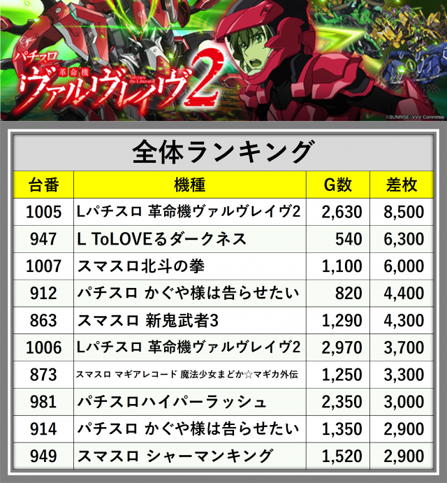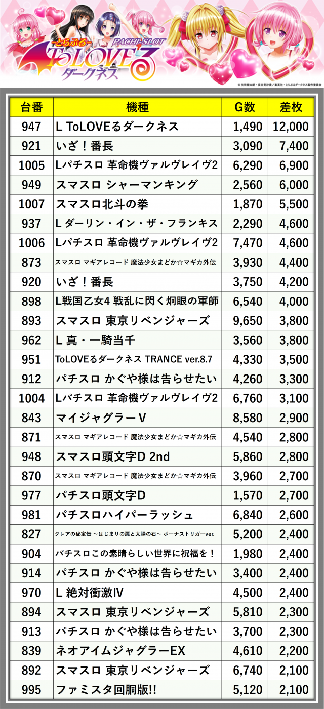 ※差枚数順に掲載しています