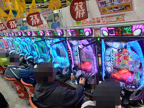 「e 東京喰種」や「eフィーバーブルーロック」、「eフィーバー炎炎ノ消防隊2 紅丸ver.」などのラッキートリガー機では機種性能を上手く引き出すプレイヤーが多く、華やかな光景がそこかしこに広がっていた。