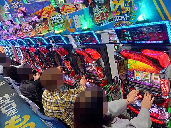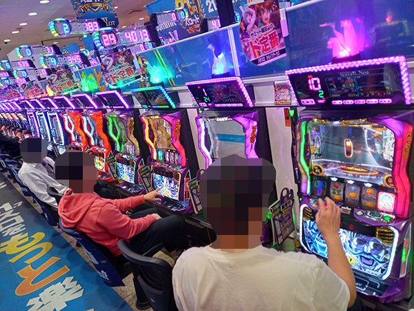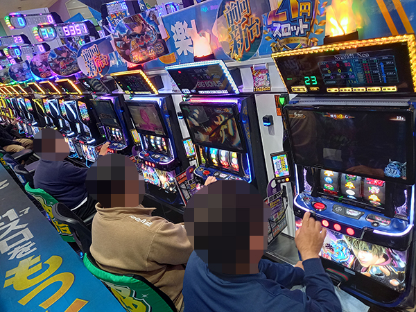 6.25円パチスロは機種を問わず好評を得ており、楽しそうにレバーを叩くプレイヤーが多かった。