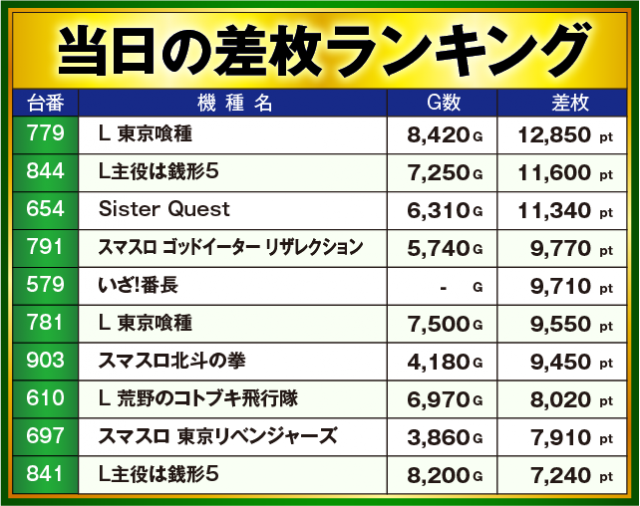 レポートの最後に「Super D’STATION金古店」の差枚ランキングも掲載!