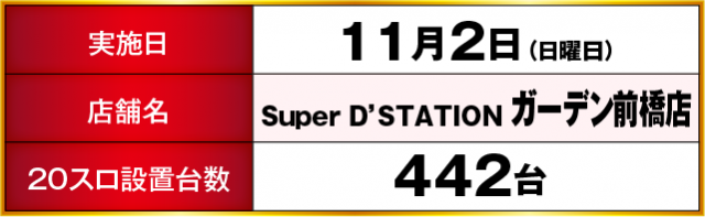 Super D’STATIONガーデン前橋店 差枚ランキング(11月1日)