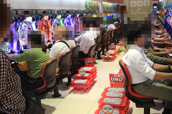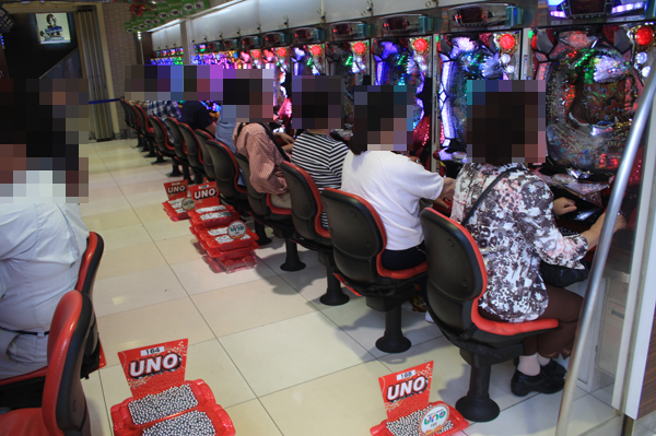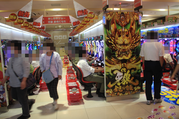 4円パチンコではMAXタイプの人気がもっとも高く、「CR牙狼 金色になれ」や「CR真・花の慶次」などには満足そうに遊技をしているプレイヤーの姿があった。