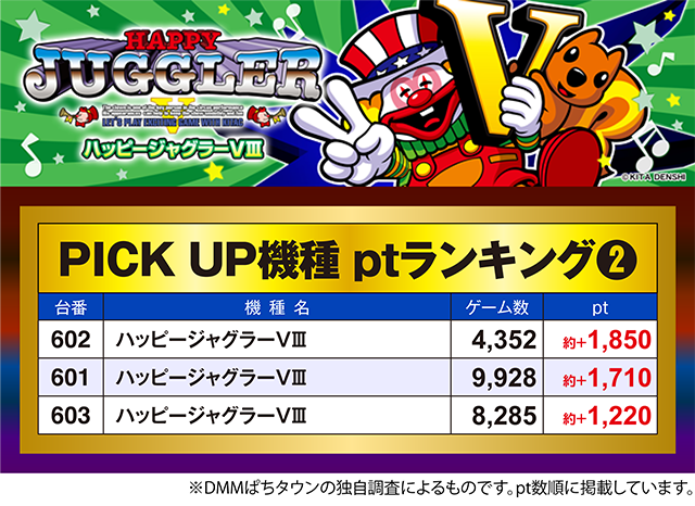 「ハッピージャグラーVⅢ」では、602番台が約+1,850pt。