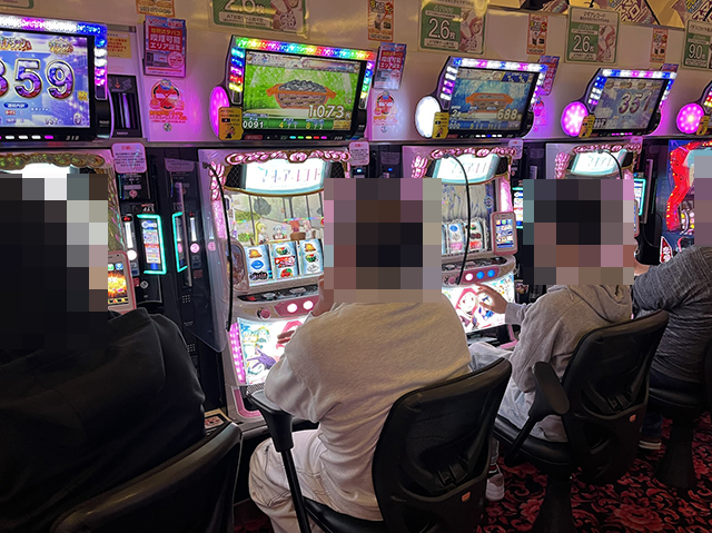 1000円/178枚パチスロの「沖ドキ!BLACK」や1000円/445枚パチスロの「パチスロ モンキーターンⅣ」など、さまざまな機種にステキな光景が広がっていた。