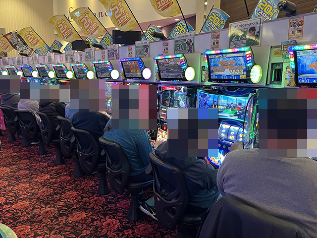ホールをみてみると、新台のスマスロや長く愛されている沖スロなど、幅広い機種が支持されていた。
