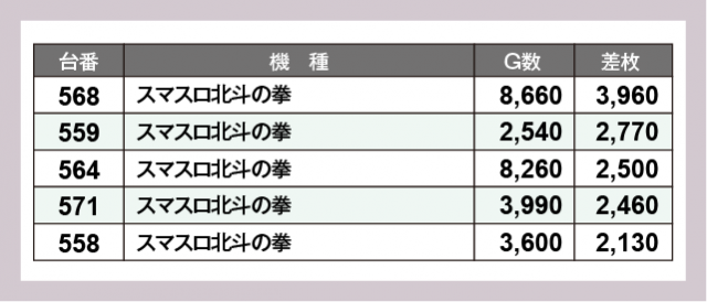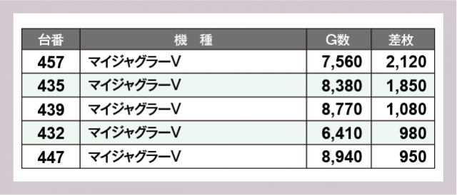 ※差枚数順に掲載しています
