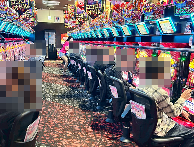 『スマスロ 新鬼武者3』に空き台はみあたらず、楽しそうに遊技をおこなっているプレイヤーが並んでいました★