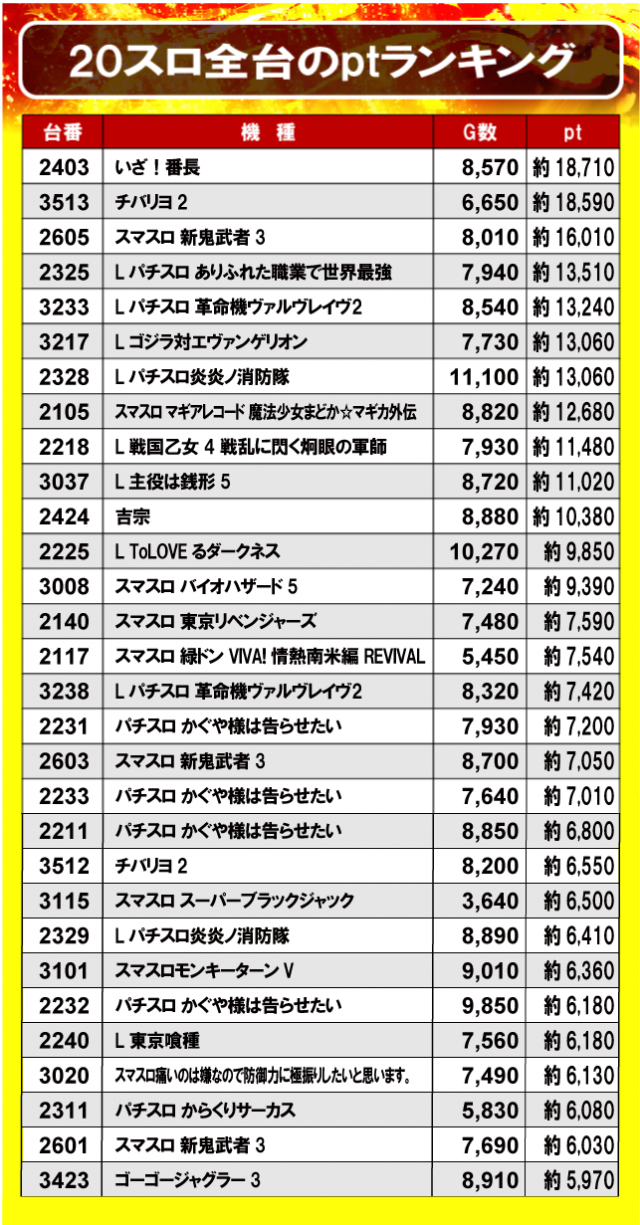 ①20スロ全台のptランキング