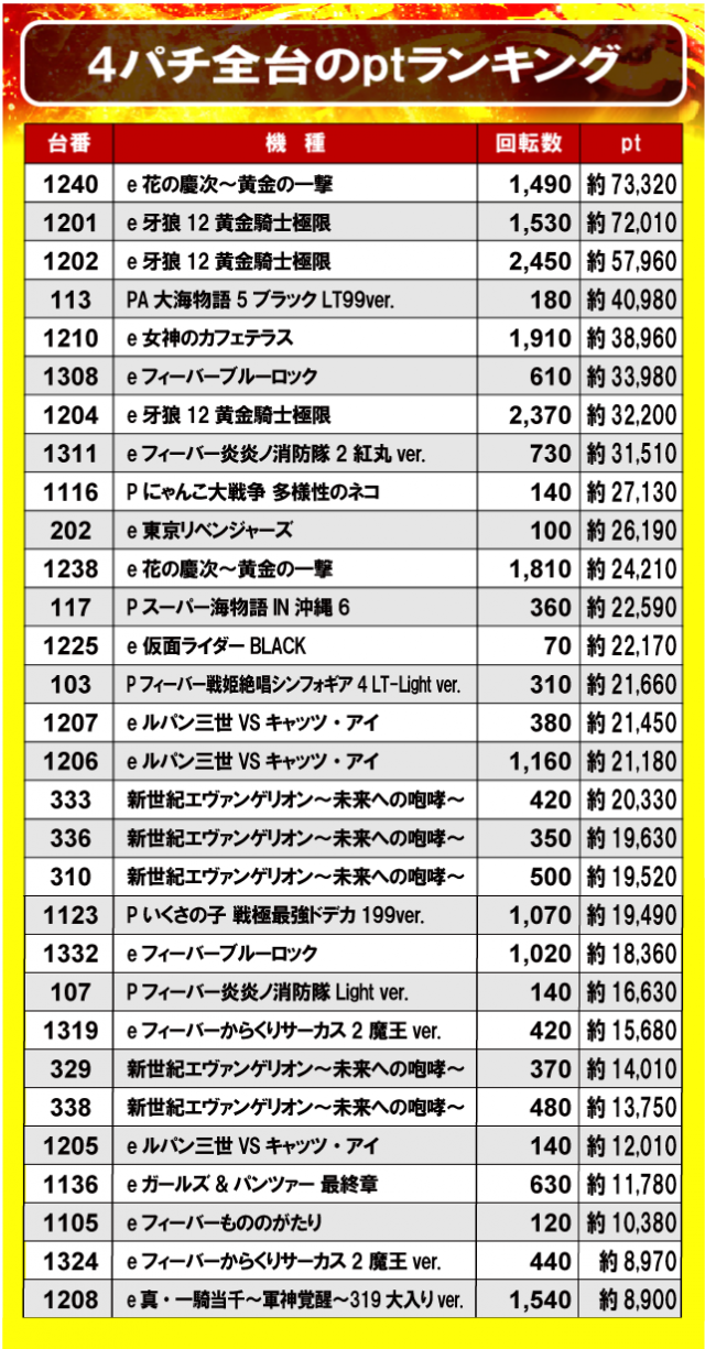②4パチ全台のptランキング