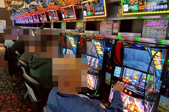 「スマスロ北斗の拳」も空き台が少なく、たくさんのプレイヤーが持ち玉で遊技をおこなっていた。