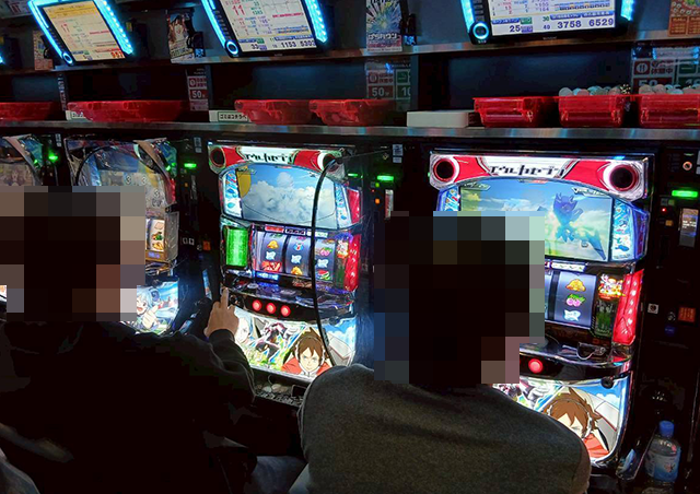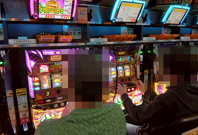 「沖ドキ!GOLD-30」や「ファンキージャグラー2」にも楽しげな姿があり、2箱以上の出玉を確認した。